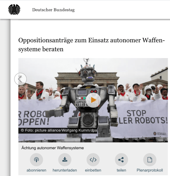 Bans on AI Killer robots “opposed,” “rejected,” with “no majority” in Germany.